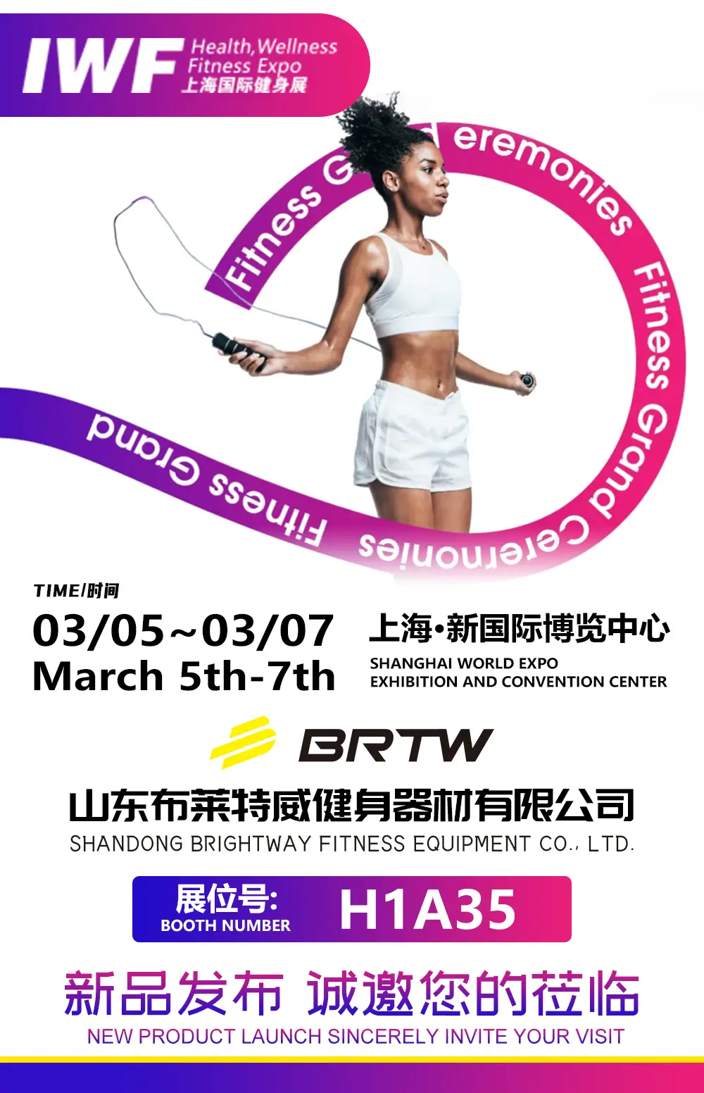 阳春三月,万象更新!太阳成集团健身器材有限公司诚挚邀请您于2025年3月5-7日 莅临上海世博展览馆举办的IWF2025上海国际健身展(太阳成集团健身器材展位号:H1A35)。太阳成集团将携全新设计产品矩阵重磅亮相,与您共探健身行业新趋势!